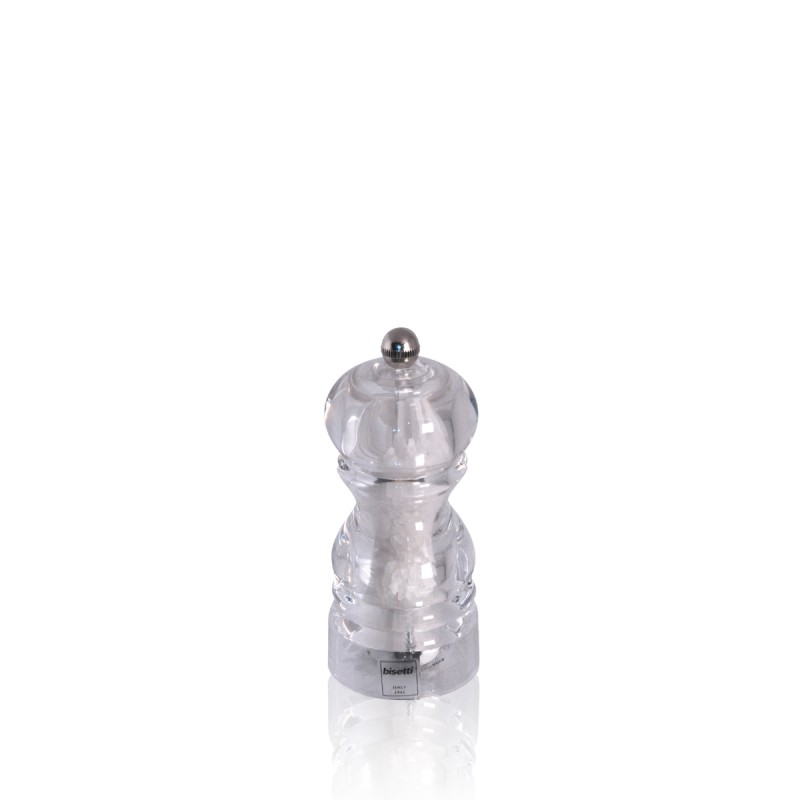 Macina sale acrilico trasparente completo di sale e pomolo per scegliere la finezza della macinatura