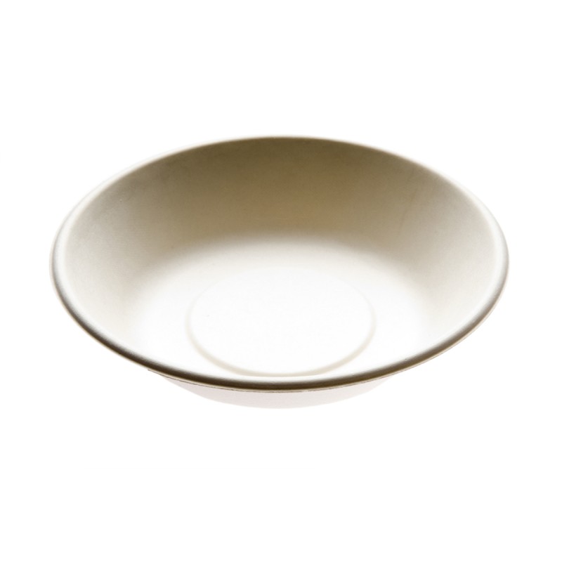 Ciotola o piatto fondo monouso in polpa di cellulosa prodotto con fogli di polpa di cellulosa ottenuti dalla fibra del gambo della canna da zucchero, dopo essere stata utilizzata per la produzione dello zucchero. In questo modo, non solo si utilizza una risorsa rinnovabile, ma non vengono tagliati ulteriori alberi per ricavare la cellulosa; è pertanto al 100% naturale, completamente biodegradabile e compostabile secondo norma EN13432