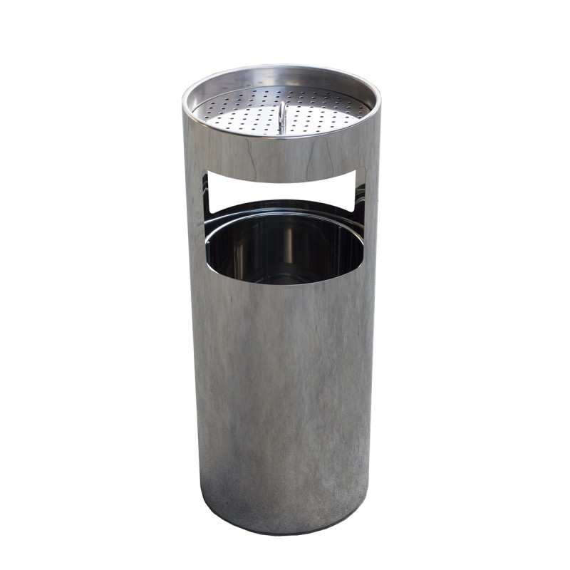 Gettacarta cilindrico in acciaio inox lucido con coperchio posacenere a griglia setaccio