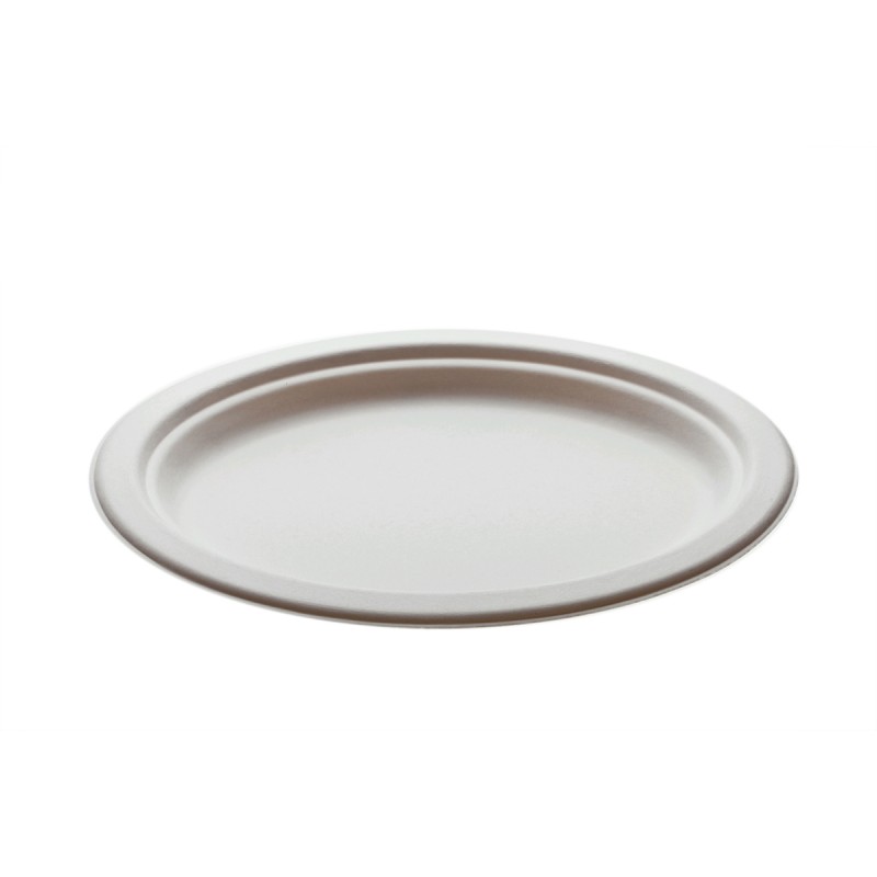 Piatto piano ovale monouso in polpa di cellulosa prodotto con fogli di polpa di cellulosa ottenuti dalla fibra del gambo della canna da zucchero, dopo essere stata utilizzata per la produzione dello zucchero. In questo modo, non solo si utilizza una risorsa rinnovabile, ma non vengono tagliati ulteriori alberi per ricavare la cellulosa; è pertanto al 100% naturale, completamente biodegradabile e compostabile secondo norma EN13432